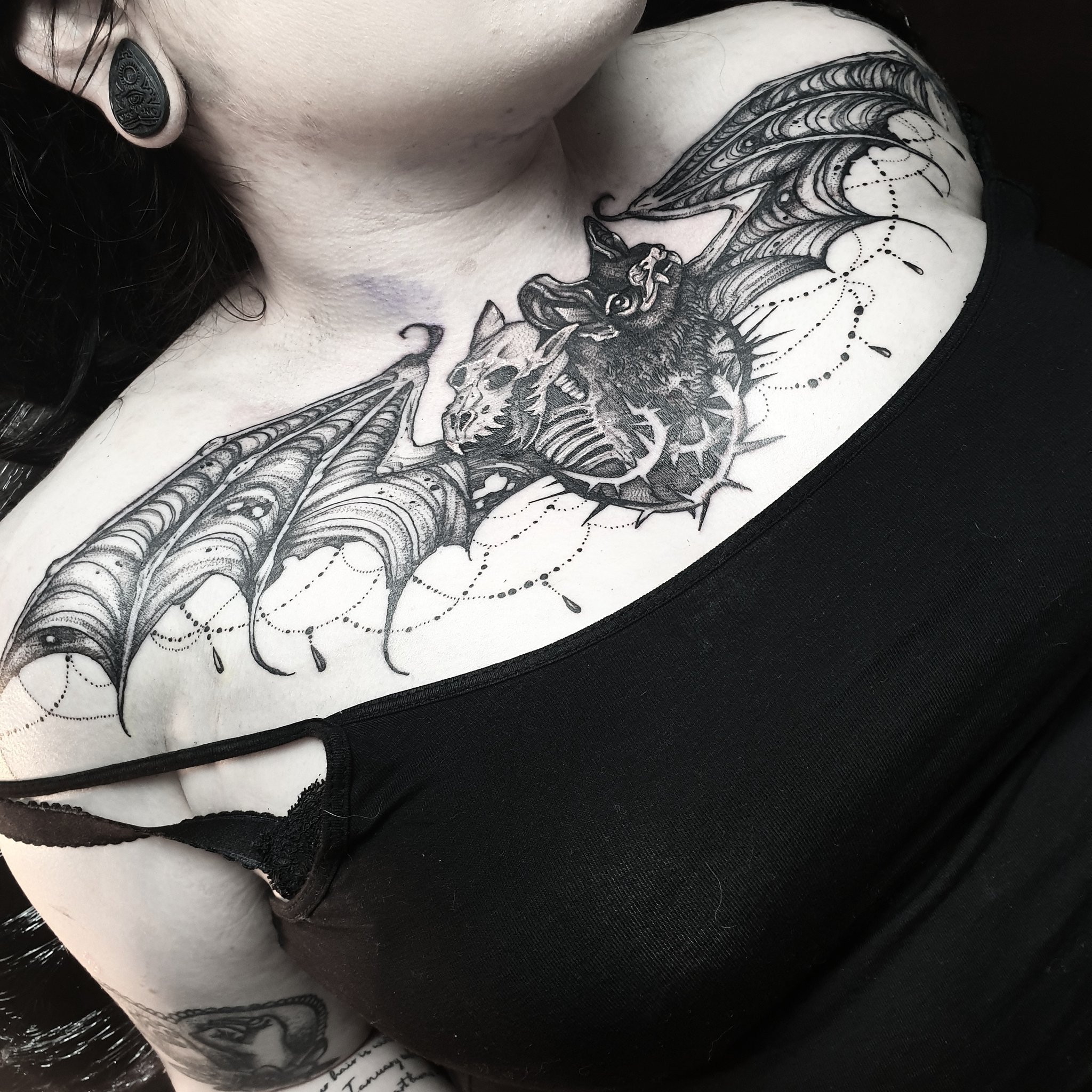 Started This Super Fun Bat Chest Peice Today Thanks So Much Adornedtattoovancity Tattoo Tattoos Tattoosvancouver Van Leg Tattoos Tattoos Vintage Tattoo